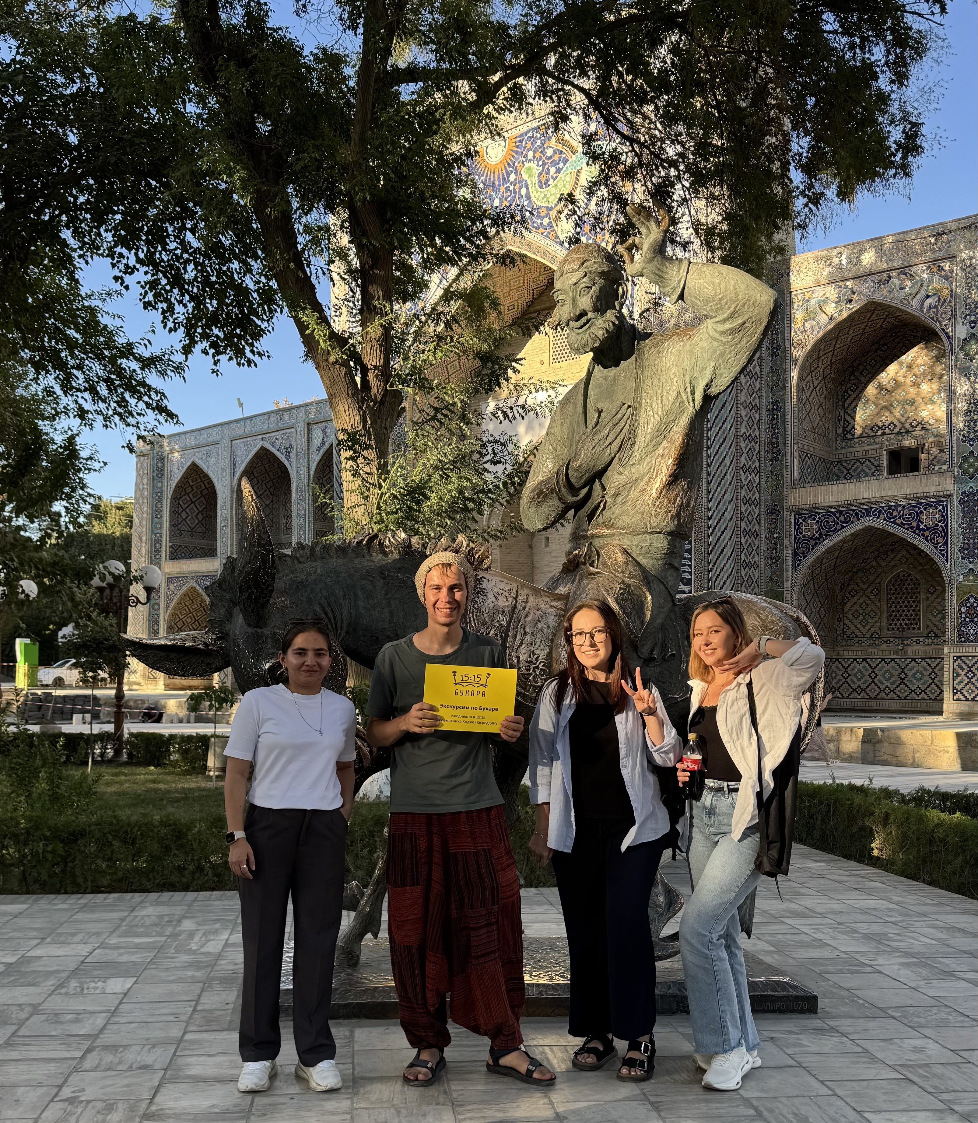 - Памятник Ходже Насреддину — весёлый философ на осле, встречающий гостей города с лёгкой улыбкой и доброй иронией.