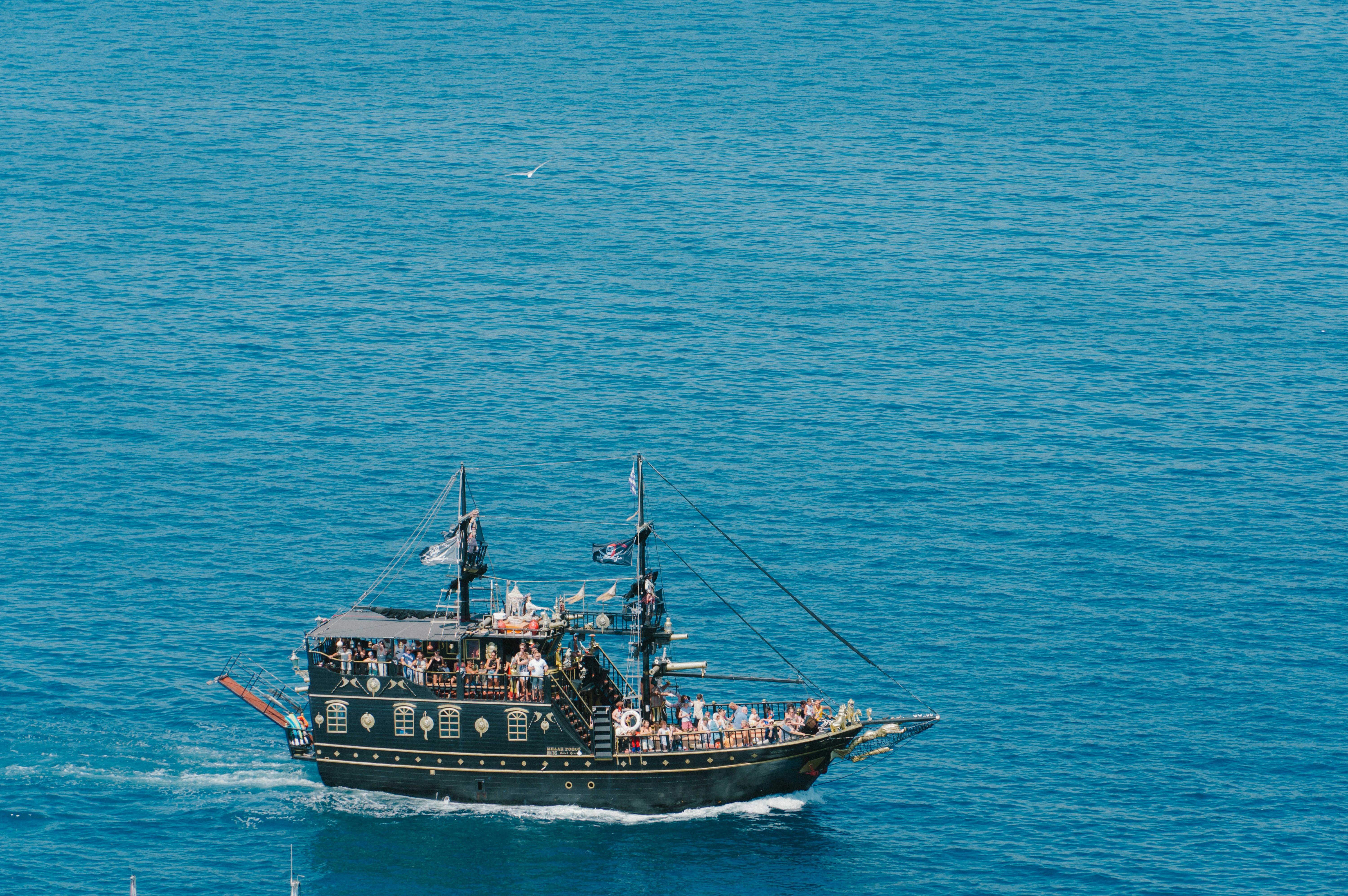 Эта экскурсия из Кемера на пиратской яхте длится 5 — 6 часов в комфортном темпе.