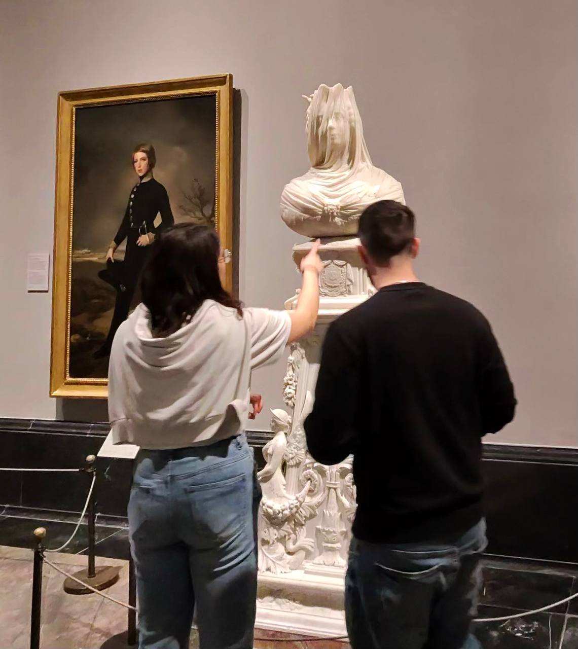 Напротив касс у скульптуры Гойи